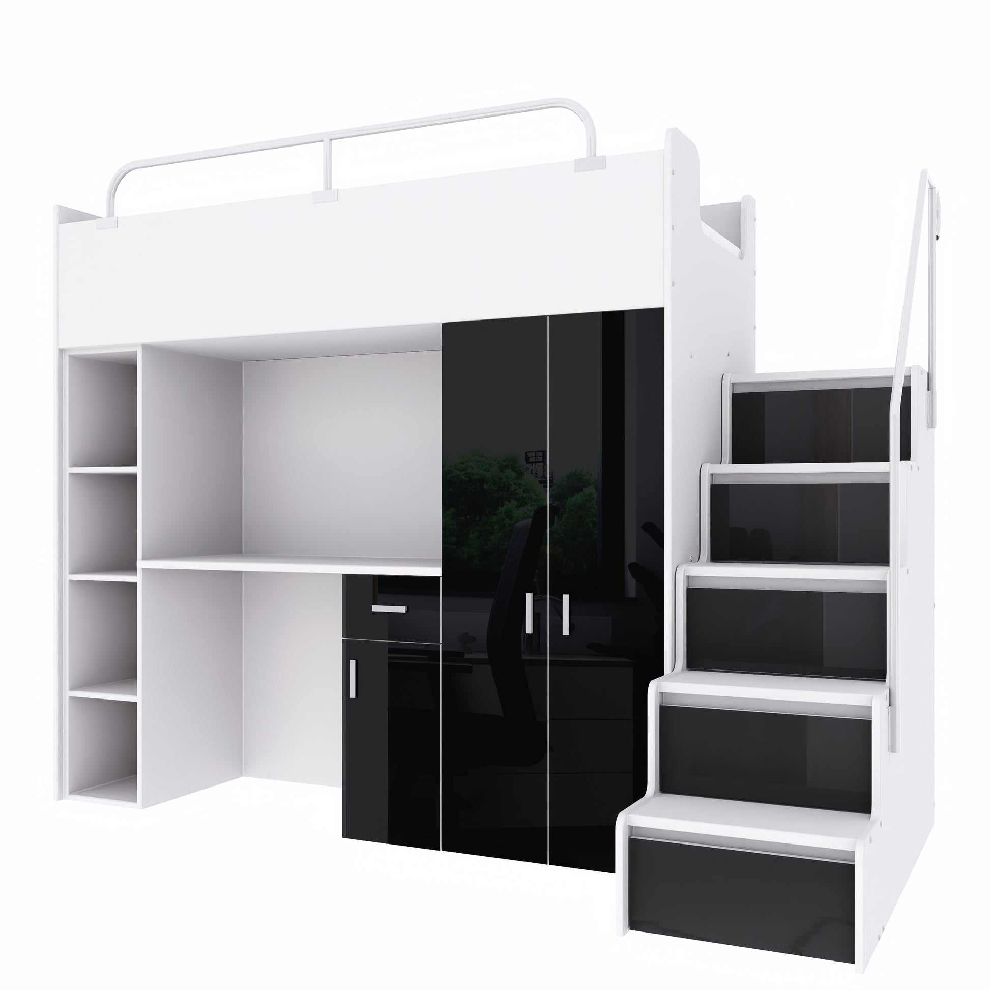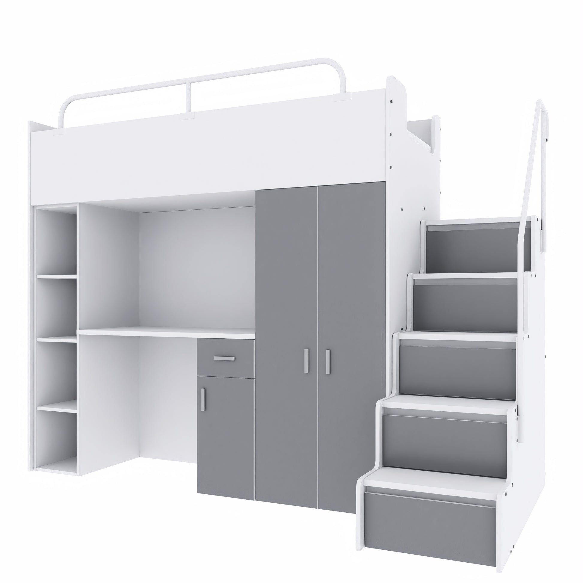 Jessie 4s High Sleeper Modern Set with Wardrobe Desk Stairs and Cabin Bed